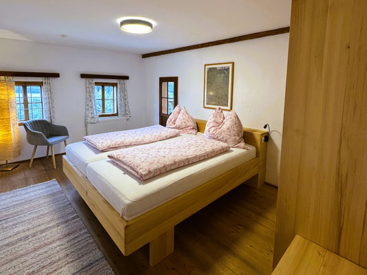 Die großzügige Wohnung besteht aus 4 Schlafzimmern, 2 Bädern und einer Top-Wohnküche und ist umgeben von Bergwiesen und Obstbäumen.